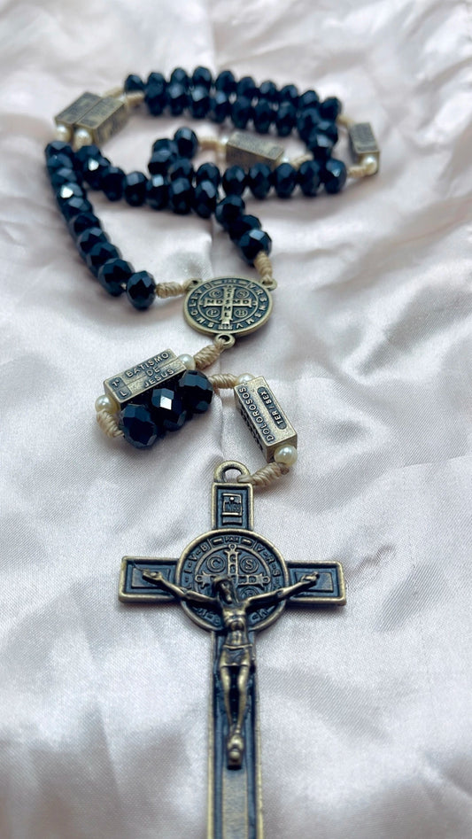 Terço dos Mistérios do Rosário Cristal Preto